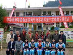 2011年,再赴中商水岩希望小學考察,並捐贈一批文具。 |